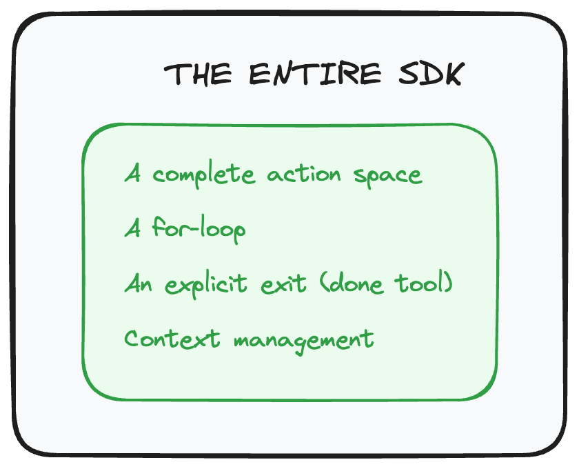 An agent is just a for-loop of messages. The only state an agent should have is: keep going until the model stops calling tools. You don't need an agent framework. You don't need anything else. It's just a for-loop of tool calls.